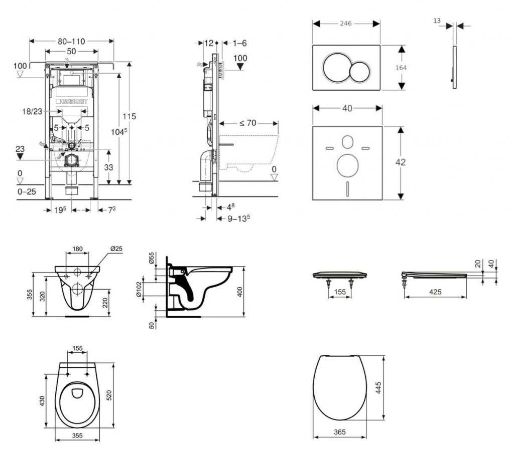 - Rám pro závěsná WC s připojovacími rozměry dle EN 33 a vyložením až 70 cm