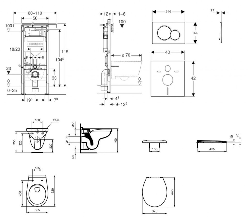 - Rám pro závěsná WC s připojovacími rozměry dle EN 33 a vyložením až 70 cm