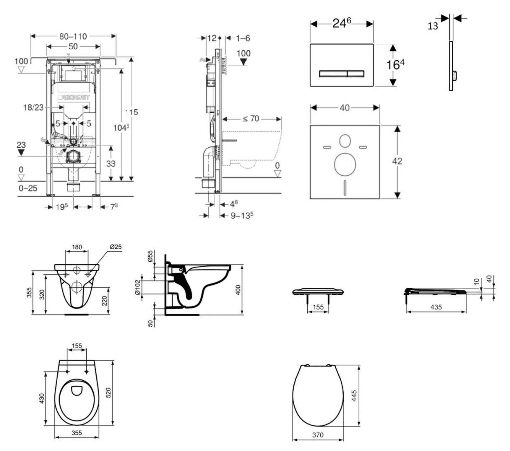 - Rám pro závěsná WC s připojovacími rozměry dle EN 33 a vyložením až 70 cm