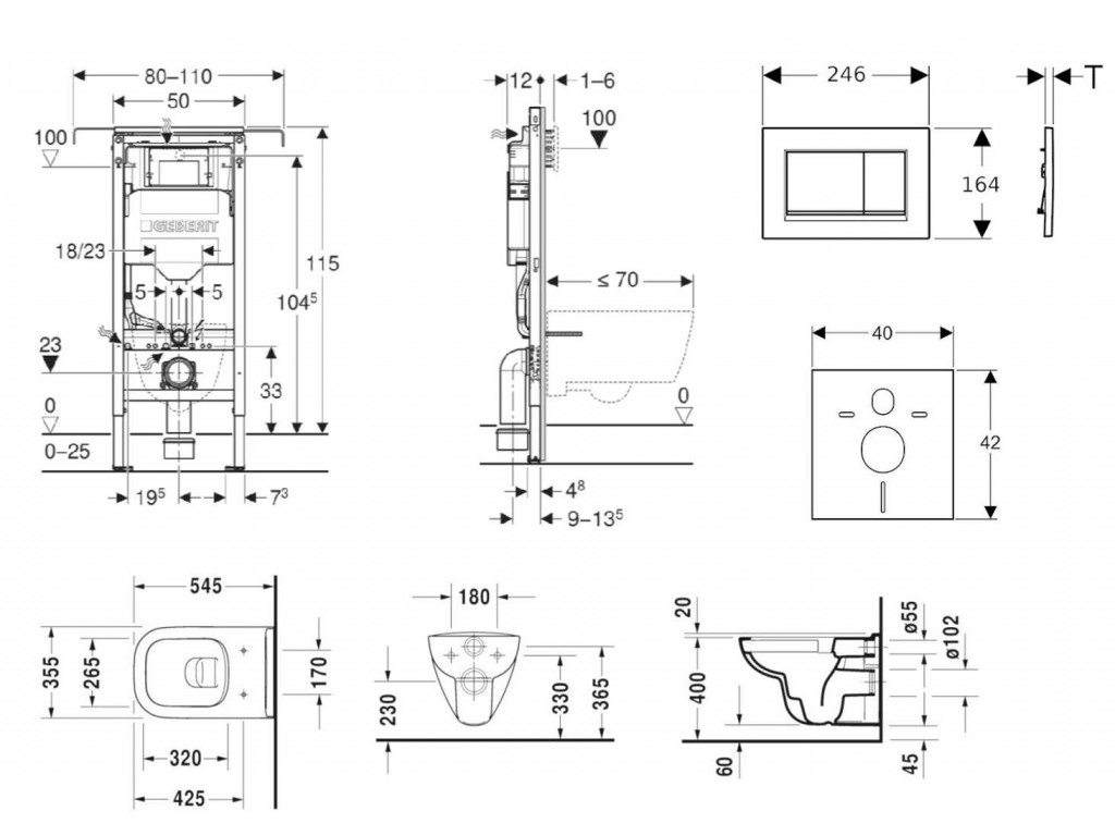 - Rám pro závěsná WC s připojovacími rozměry dle EN 33 a vyložením až 70 cm