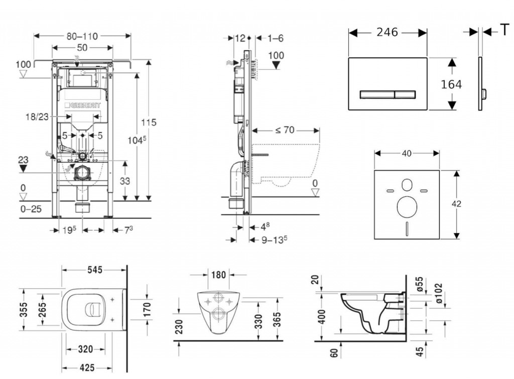 - Rám pro závěsná WC s připojovacími rozměry dle EN 33 a vyložením až 70 cm