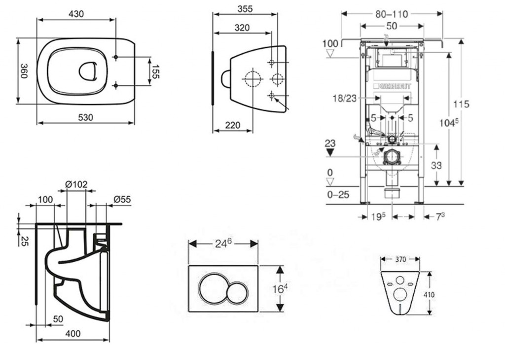 - Rám pro závěsná WC s připojovacími rozměry dle EN 33 a vyložením až 70 cm
