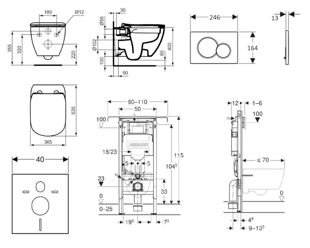 - Splachovací nádržka pod omítku Geberit Sigma 12 cm, s izolací proti orosování