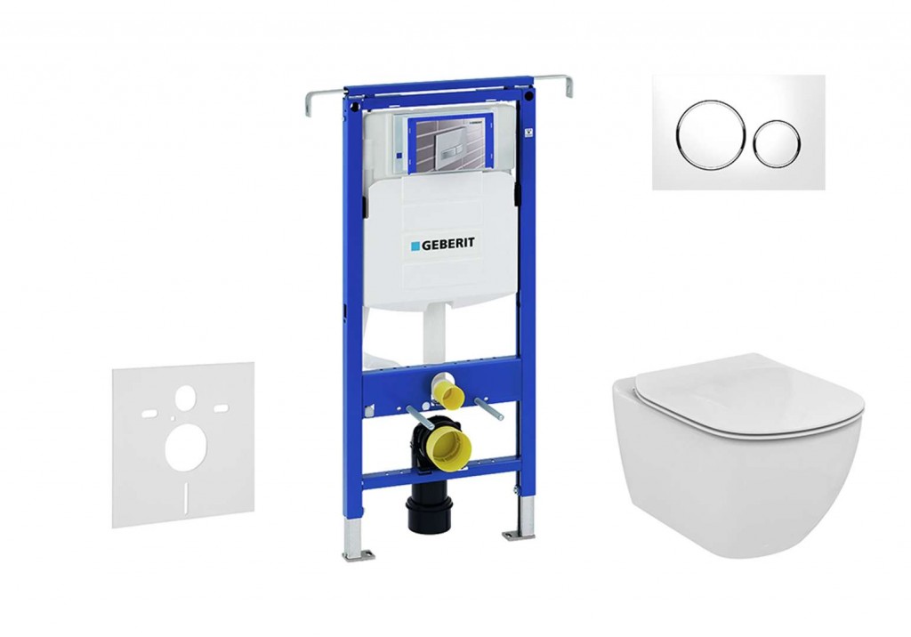 ultraploché WC sedátko Ideal Standard Tesi (T352701) - 2-činné ovládací tlačítko Geberit Sigma20, bílá/chrom (115.882.KJ.1)