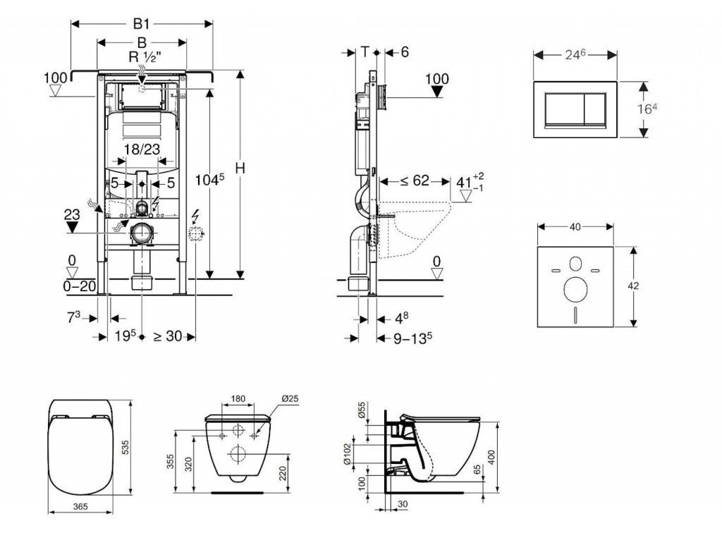 - vybaven trubkovou chráničkou pro přívodní potrubí k připojení sprchovacích WC Geberit AquaClean