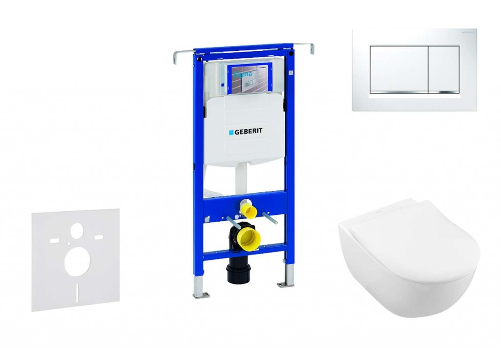 GEBERIT - Duofix Modul pro závěsné WC s tlačítkem Sigma30, bílá/lesklý chrom + Villeroy Boch - WC a sedátko, DirectFlush, SoftClose, CeramicPlus (111.355.00.5 NI5)