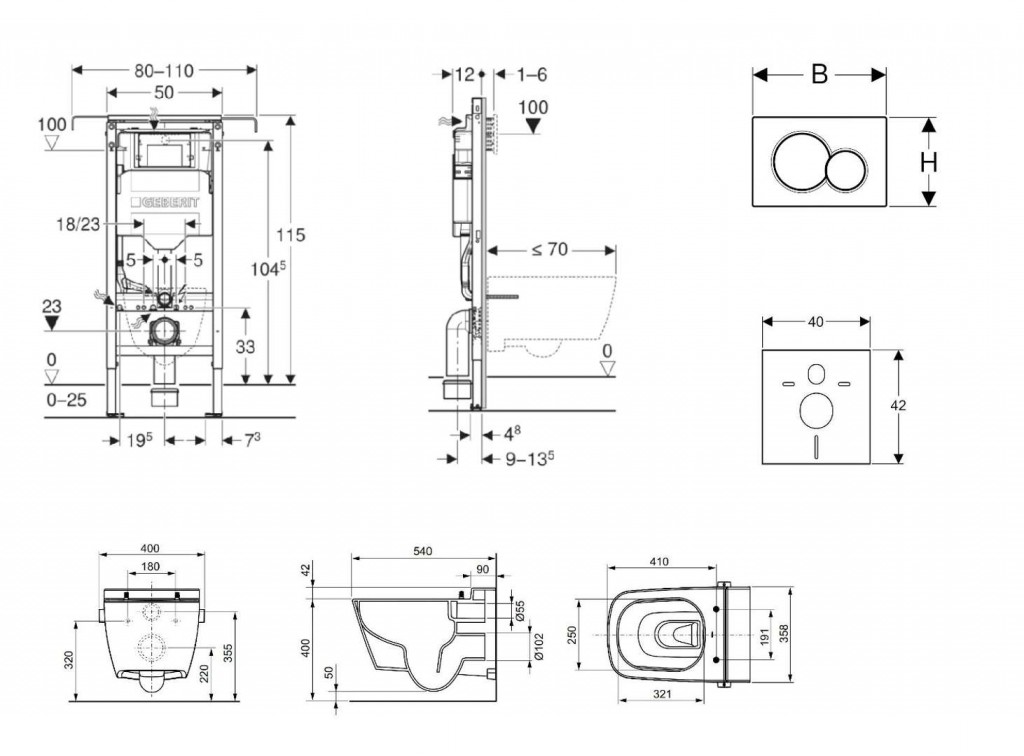 - Rám pro závěsná WC s připojovacími rozměry dle EN 33 a vyložením až 70 cm