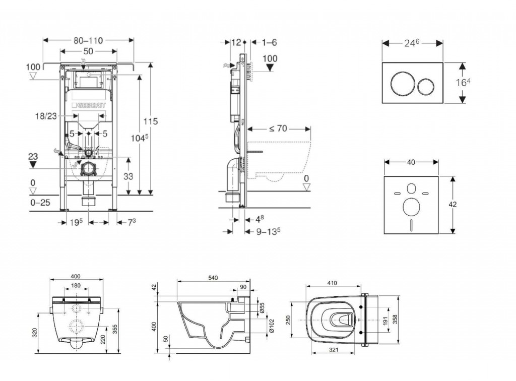 - Rám pro závěsná WC s připojovacími rozměry dle EN 33 a vyložením až 70 cm