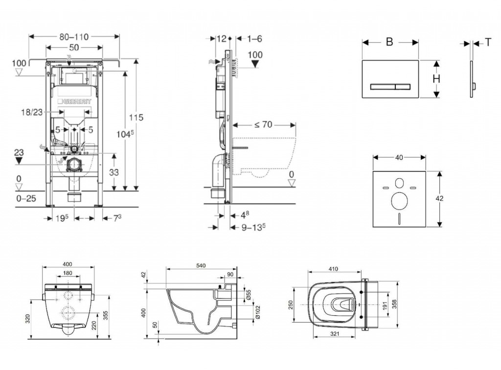 - Rám pro závěsná WC s připojovacími rozměry dle EN 33 a vyložením až 70 cm