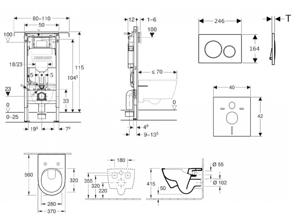 - Rám pro závěsná WC s připojovacími rozměry dle EN 33 a vyložením až 70 cm