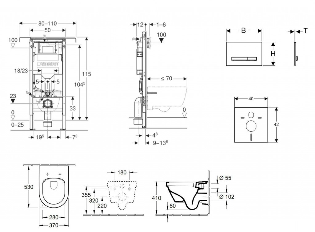 - Rám pro závěsná WC s připojovacími rozměry dle EN 33 a vyložením až 70 cm