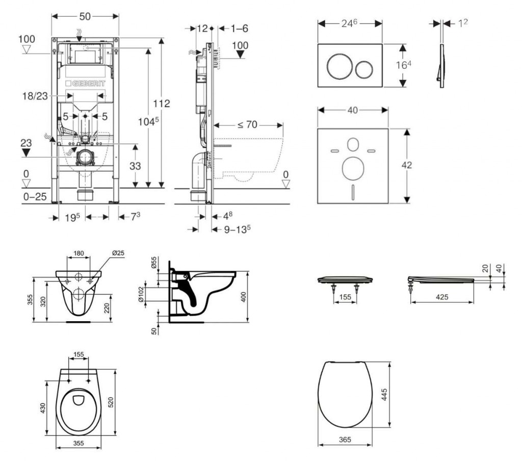 - pro závěsná WC s připojovacími rozměry podle EN 33 a přesahem do 70 cm