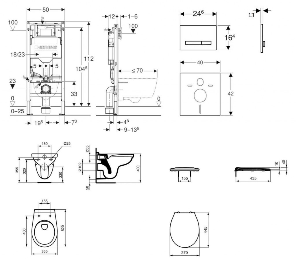 - k montáži do systémových stěn Geberit Duofix částečně vysokých nebo vysokých na výšku místnosti