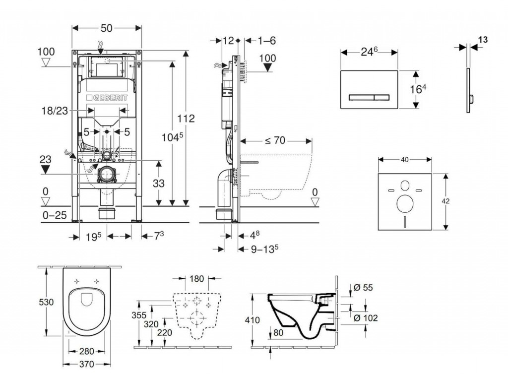 - vybaven trubkovou chráničkou pro přívodní potrubí k připojení sprchovacích WC Geberit AquaClean