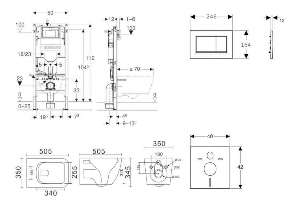 - vybaven trubkovou chráničkou pro přívodní potrubí k připojení sprchovacích WC Geberit AquaClean