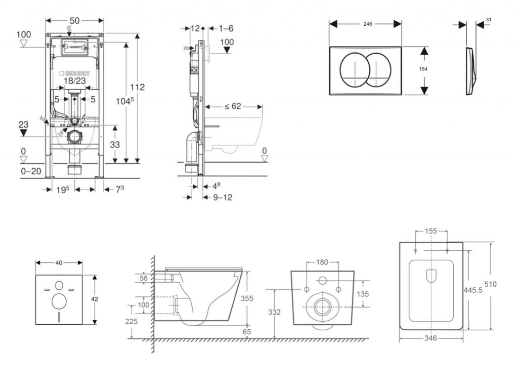 - rám pro nástěnné WC s připojovacími rozměry dle EN 33 a přesahem do 62 cm