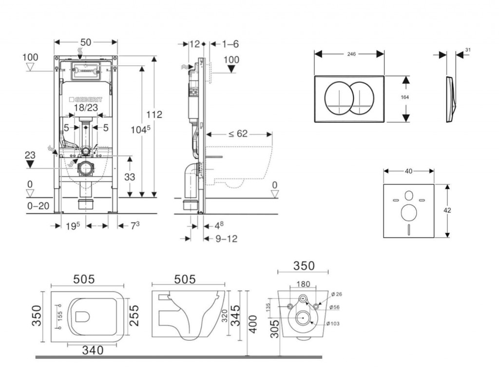 - vybaven trubkovou chráničkou pro přívodní potrubí k připojení sprchovacích WC Geberit AquaClean