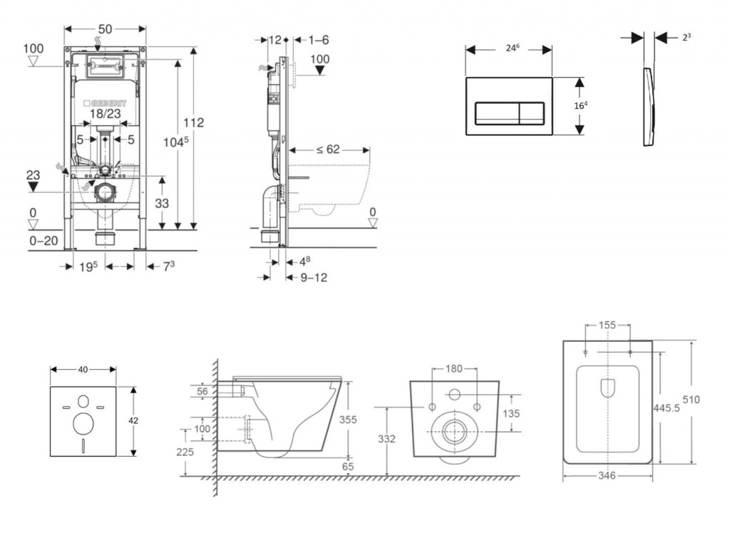 - rám pro nástěnné WC s připojovacími rozměry dle EN 33 a přesahem do 62 cm