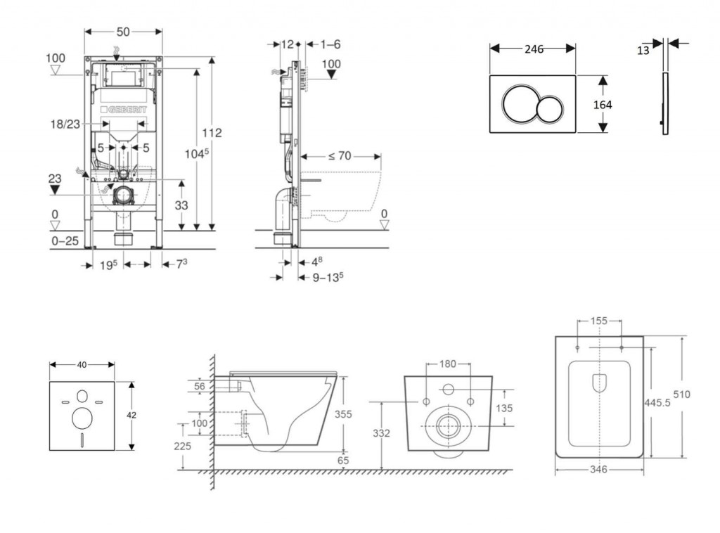 - k montáži do systémových stěn Geberit Duofix částečně vysokých nebo vysokých na výšku místnosti
