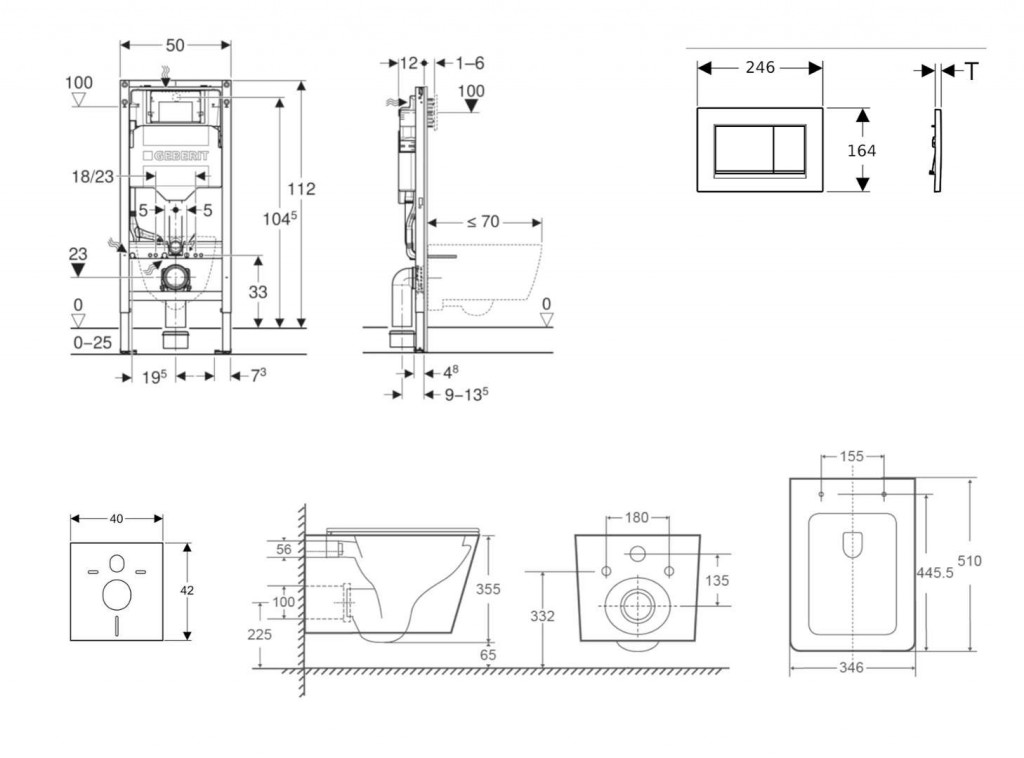 - k montáži do systémových stěn Geberit Duofix částečně vysokých nebo vysokých na výšku místnosti