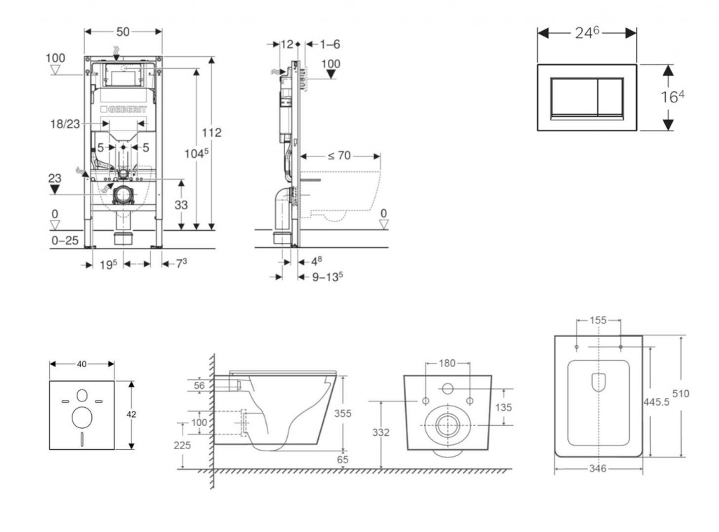 - k montáži do systémových stěn Geberit Duofix částečně vysokých nebo vysokých na výšku místnosti