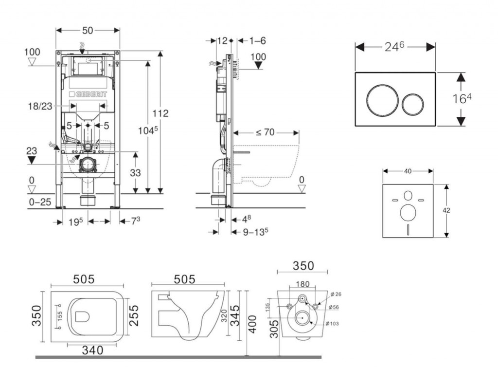 - pro závěsná WC s připojovacími rozměry podle EN 33 a přesahem do 70 cm