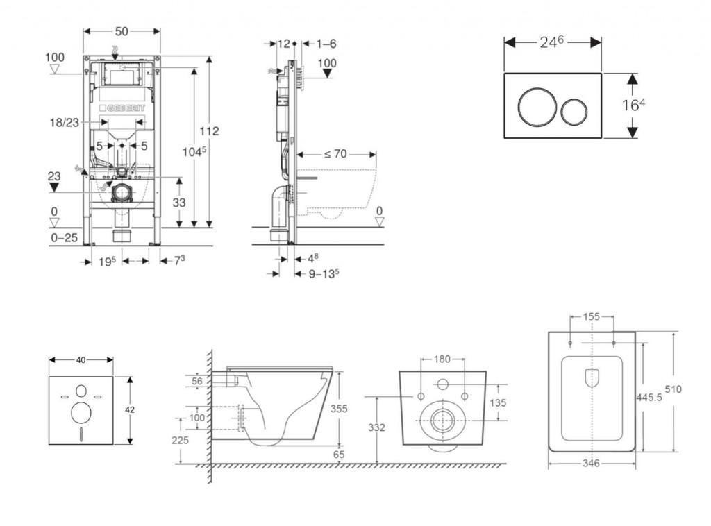 - k montáži do systémových stěn Geberit Duofix částečně vysokých nebo vysokých na výšku místnosti
