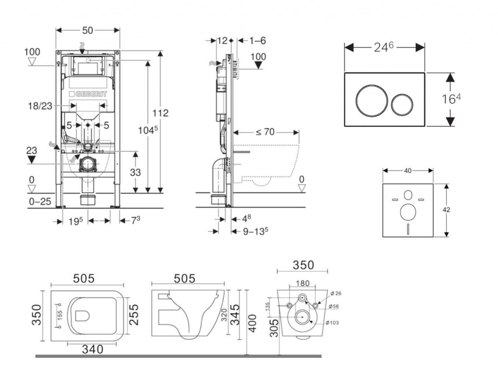 - vybaven trubkovou chráničkou pro přívodní potrubí k připojení sprchovacích WC Geberit AquaClean