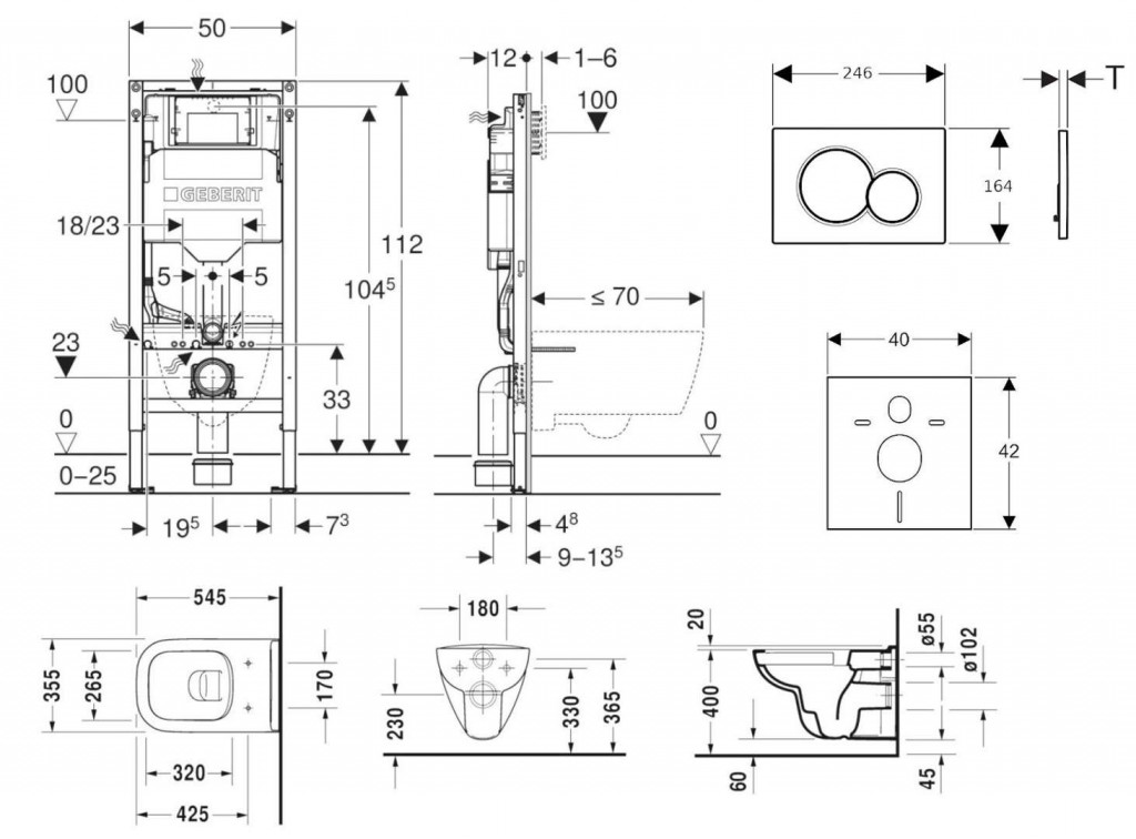 - k montáži do systémových stěn Geberit Duofix částečně vysokých nebo vysokých na výšku místnosti