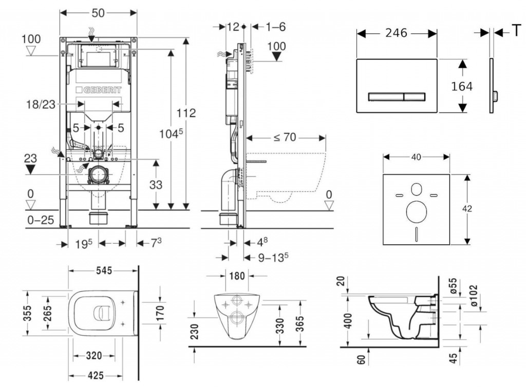 - vybaven trubkovou chráničkou pro přívodní potrubí k připojení sprchovacích WC Geberit AquaClean