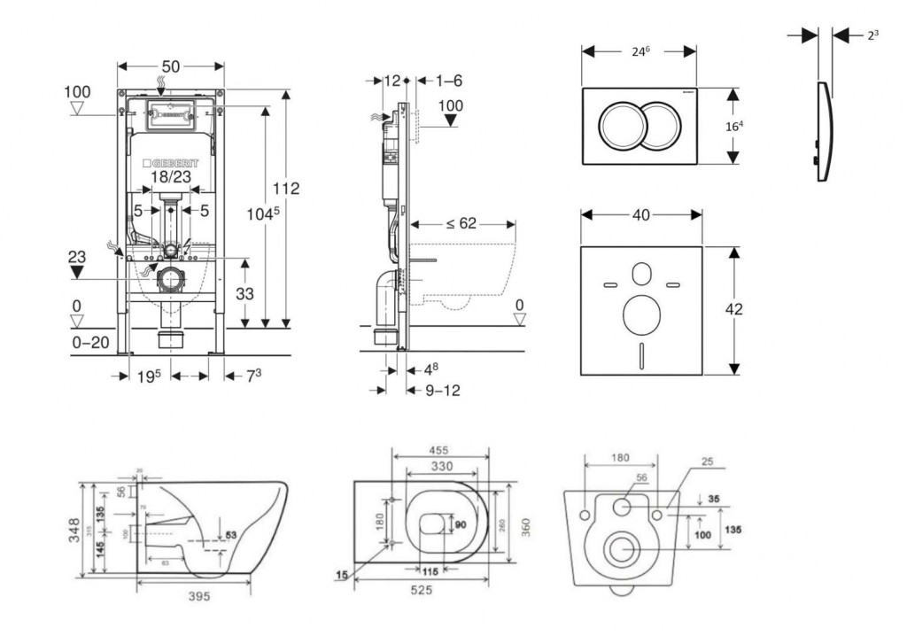 - rám pro nástěnné WC s připojovacími rozměry dle EN 33 a přesahem do 62 cm