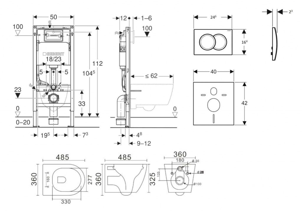 - vybaven trubkovou chráničkou pro přívodní potrubí k připojení sprchovacích WC Geberit AquaClean