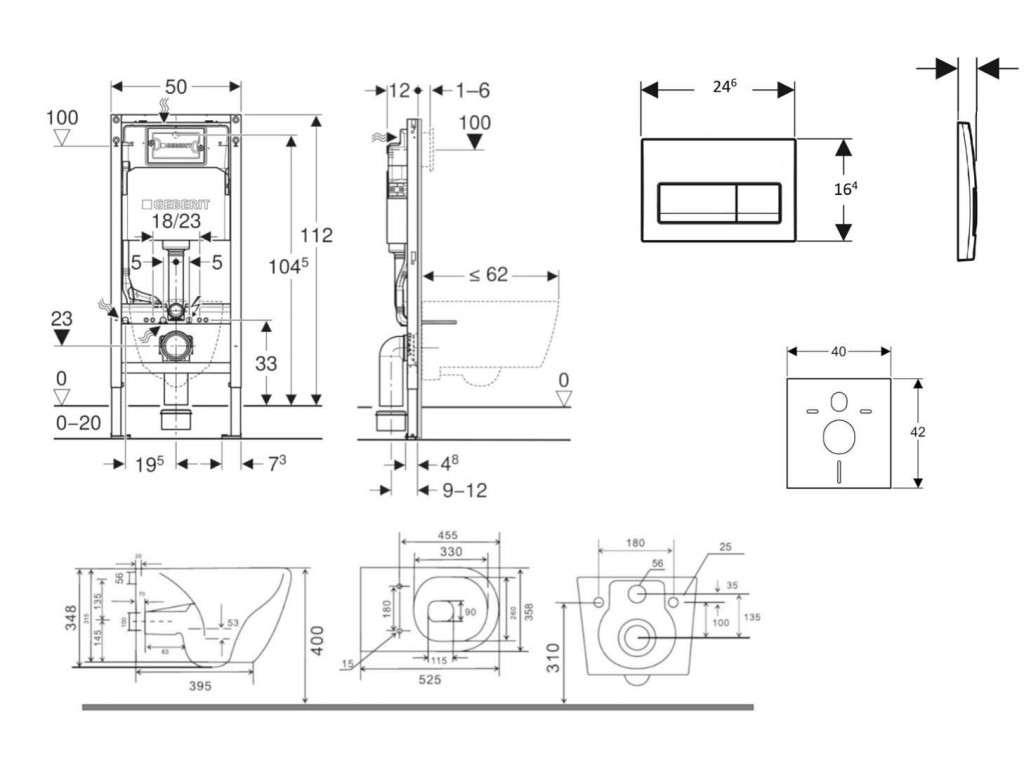 - vybaven trubkovou chráničkou pro přívodní potrubí k připojení sprchovacích WC Geberit AquaClean