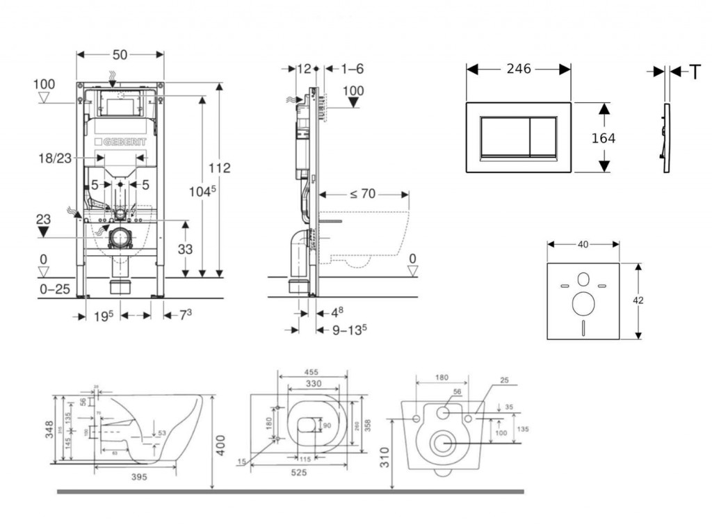 - pro závěsná WC s připojovacími rozměry podle EN 33 a přesahem do 70 cm