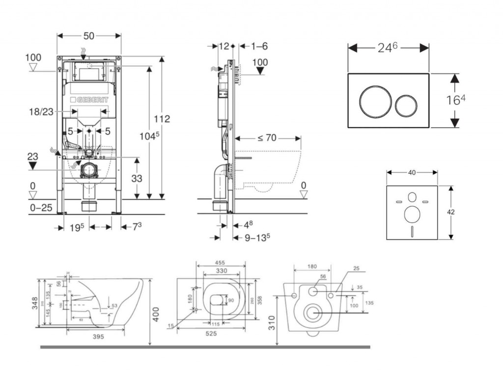 - vybaven trubkovou chráničkou pro přívodní potrubí k připojení sprchovacích WC Geberit AquaClean