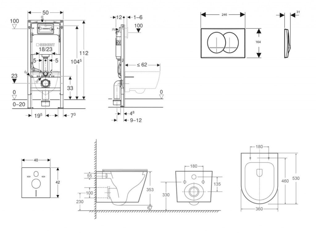- rám pro nástěnné WC s připojovacími rozměry dle EN 33 a přesahem do 62 cm