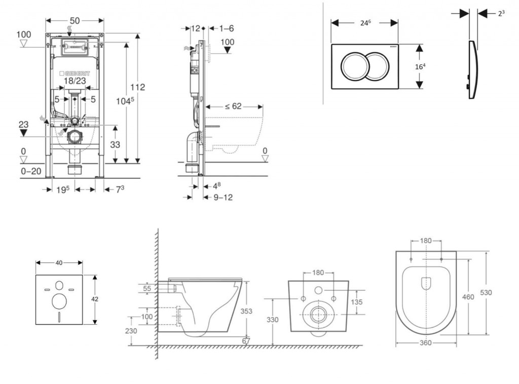 - rám pro nástěnné WC s připojovacími rozměry dle EN 33 a přesahem do 62 cm