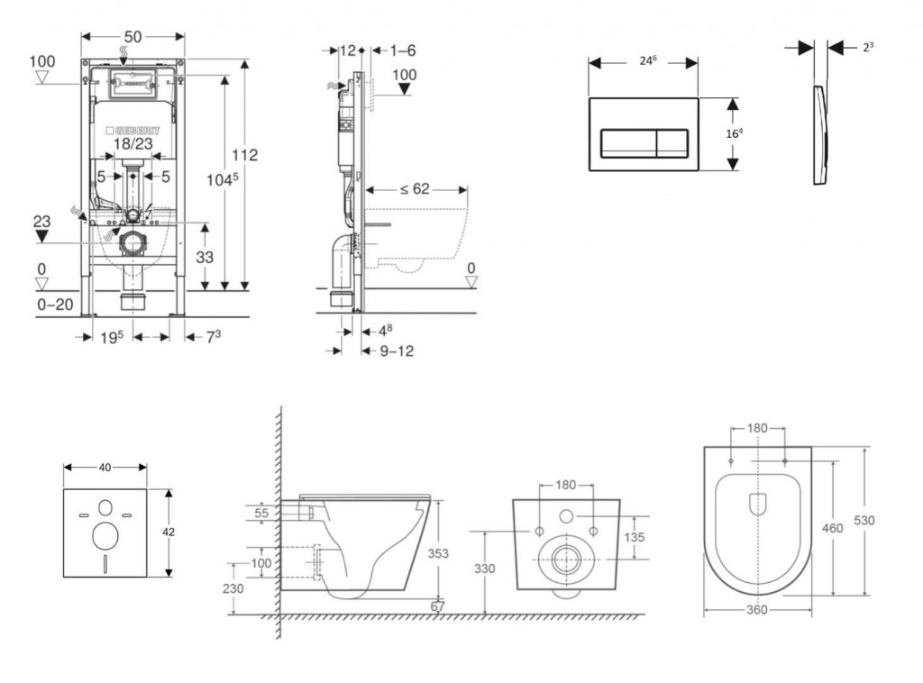 - rám pro nástěnné WC s připojovacími rozměry dle EN 33 a přesahem do 62 cm