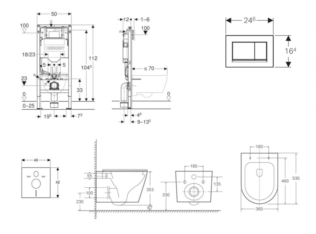 - vybaven trubkovou chráničkou pro přívodní potrubí k připojení sprchovacích WC Geberit AquaClean