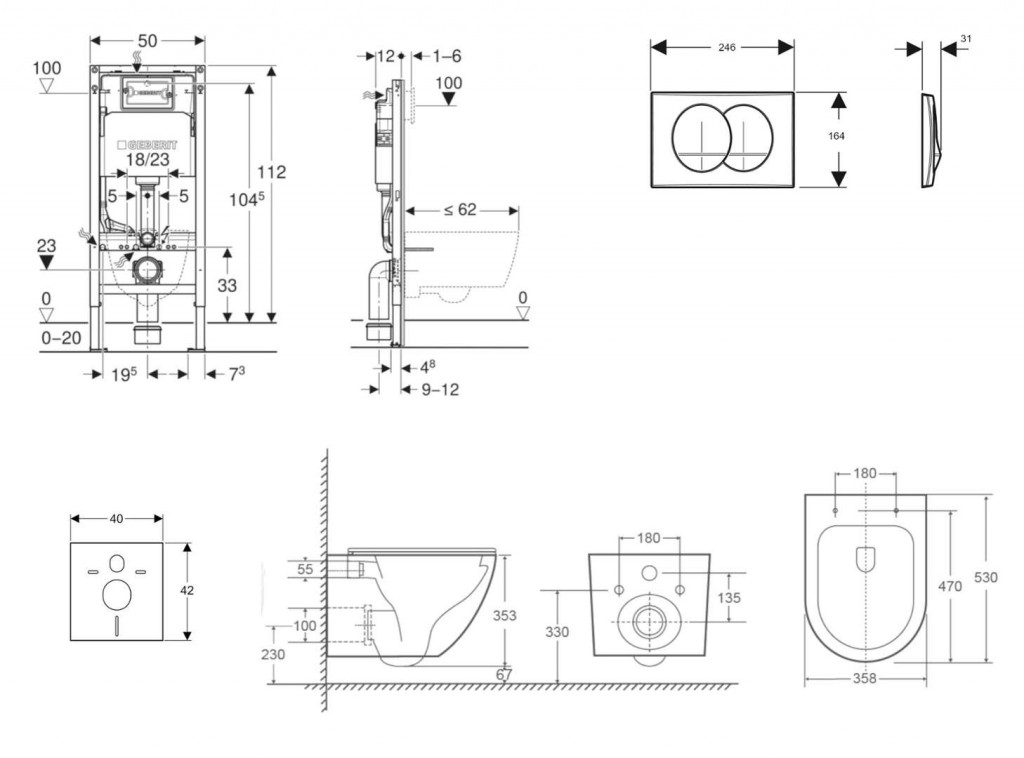- vybaven trubkovou chráničkou pro přívodní potrubí k připojení sprchovacích WC Geberit AquaClean