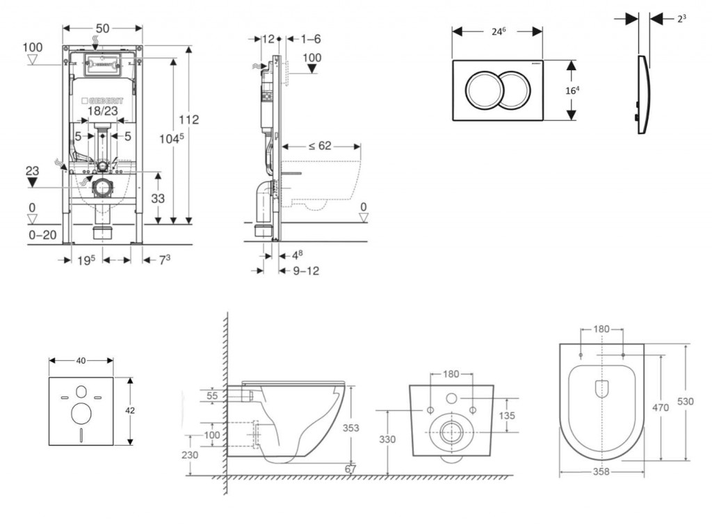 - vybaven trubkovou chráničkou pro přívodní potrubí k připojení sprchovacích WC Geberit AquaClean