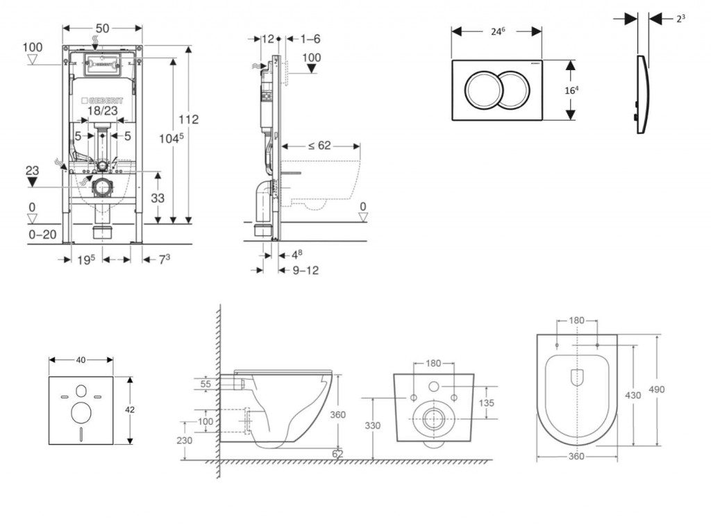 - rám pro nástěnné WC s připojovacími rozměry dle EN 33 a přesahem do 62 cm