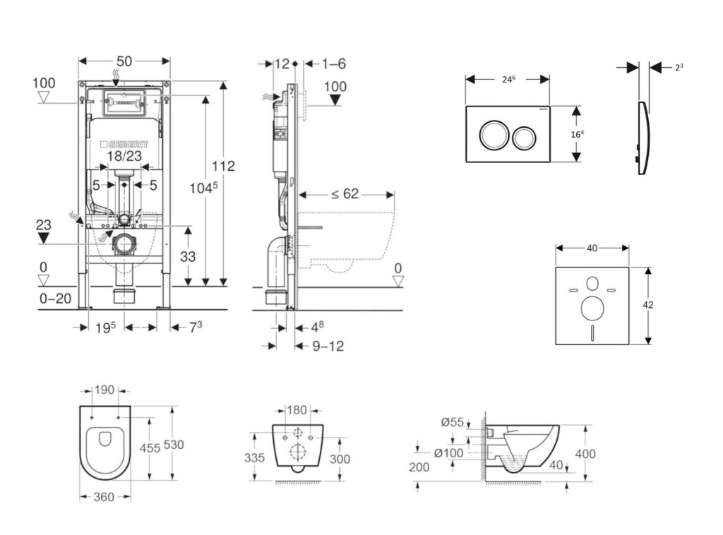 - rám pro nástěnné WC s připojovacími rozměry dle EN 33 a přesahem do 62 cm