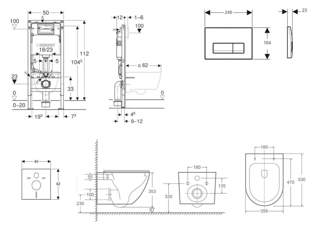 - rám pro nástěnné WC s připojovacími rozměry dle EN 33 a přesahem do 62 cm