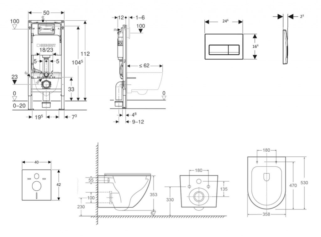 - rám pro nástěnné WC s připojovacími rozměry dle EN 33 a přesahem do 62 cm