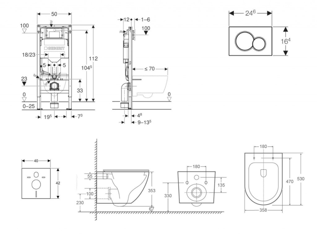 - pro závěsná WC s připojovacími rozměry podle EN 33 a přesahem do 70 cm