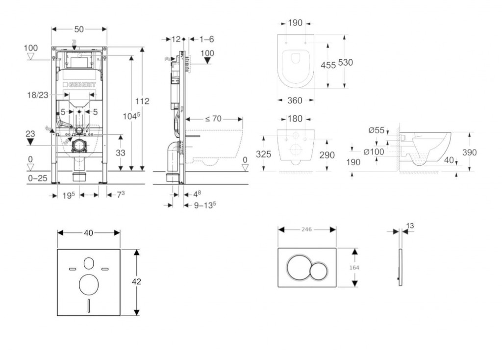 - k montáži do systémových stěn Geberit Duofix částečně vysokých nebo vysokých na výšku místnosti
