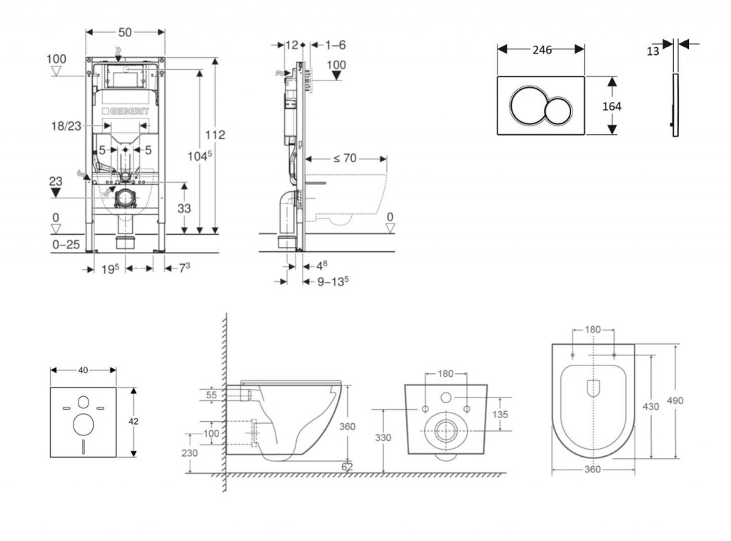 - k montáži do systémových stěn Geberit Duofix částečně vysokých nebo vysokých na výšku místnosti