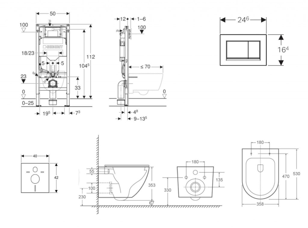 - pro závěsná WC s připojovacími rozměry podle EN 33 a přesahem do 70 cm