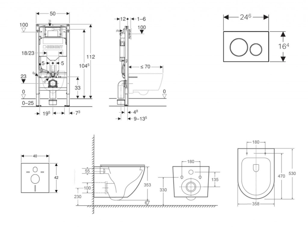 - pro závěsná WC s připojovacími rozměry podle EN 33 a přesahem do 70 cm
